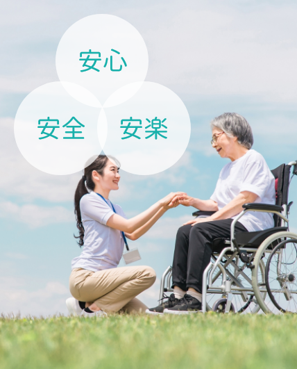 当社では安心、安全、安楽の調和の取れたケアを提供します。患者様やご家族様のお悩みに寄り添いながら、穏やかな在宅療養生活を実現いたします。